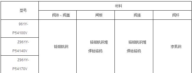 Z961Y-P54100V、Z961Y-P54140V、Z961Y-P54170V型高溫高壓電動電站閘閥零部件材料