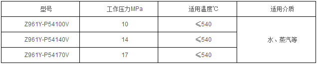 Z961Y-P54100V、Z961Y-P54140V、Z961Y-P54170V 型高溫高壓電動電站閘閥主要性能參數