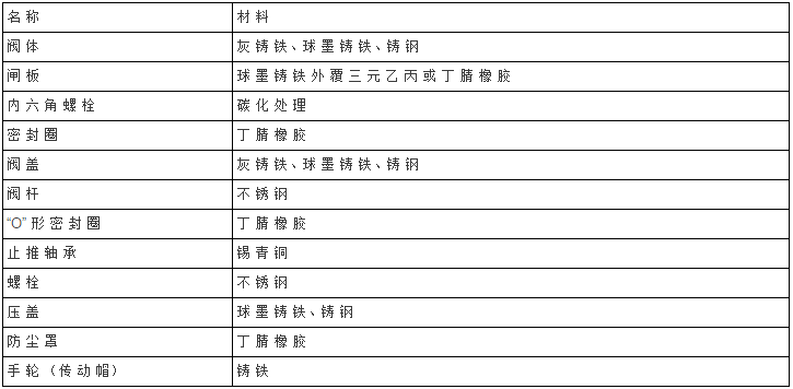 Z45X暗桿彈性座封閘閥的主要零件材料表: