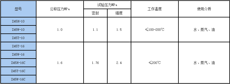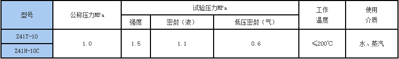 暗桿楔式鑄鐵閘閥主要技術參數: