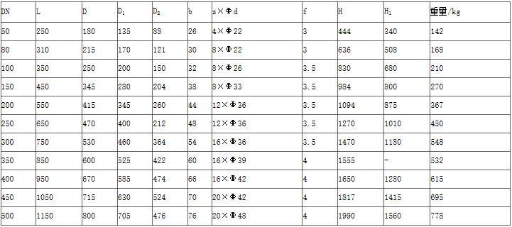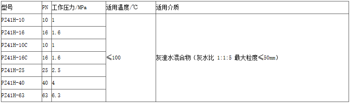 PZ41H排渣閘閥主要尺寸 Main dimensions