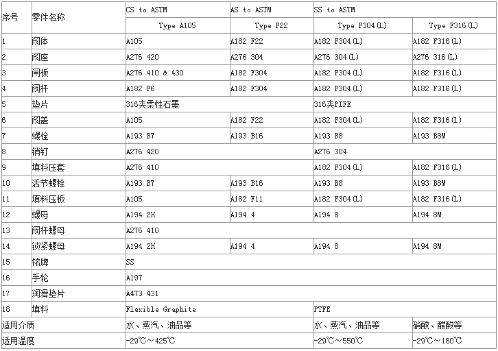 法蘭標準符合API 602,MSS-SP-118(可采用標準)和ANSI B16.34、B35352。檢驗與測試按API598,標志按MSS-Sp-25。
