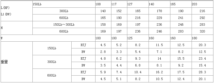 鍛鋼法蘭閘閥尺寸(mm)和重量(kg)