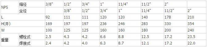 內螺紋與承插焊閘閥寸(MM)和重量(KG)